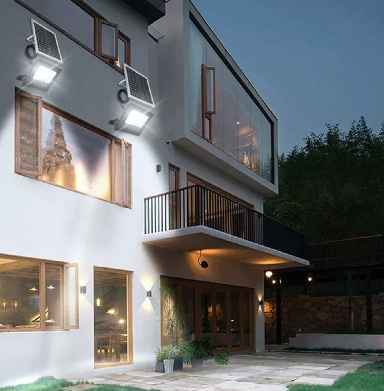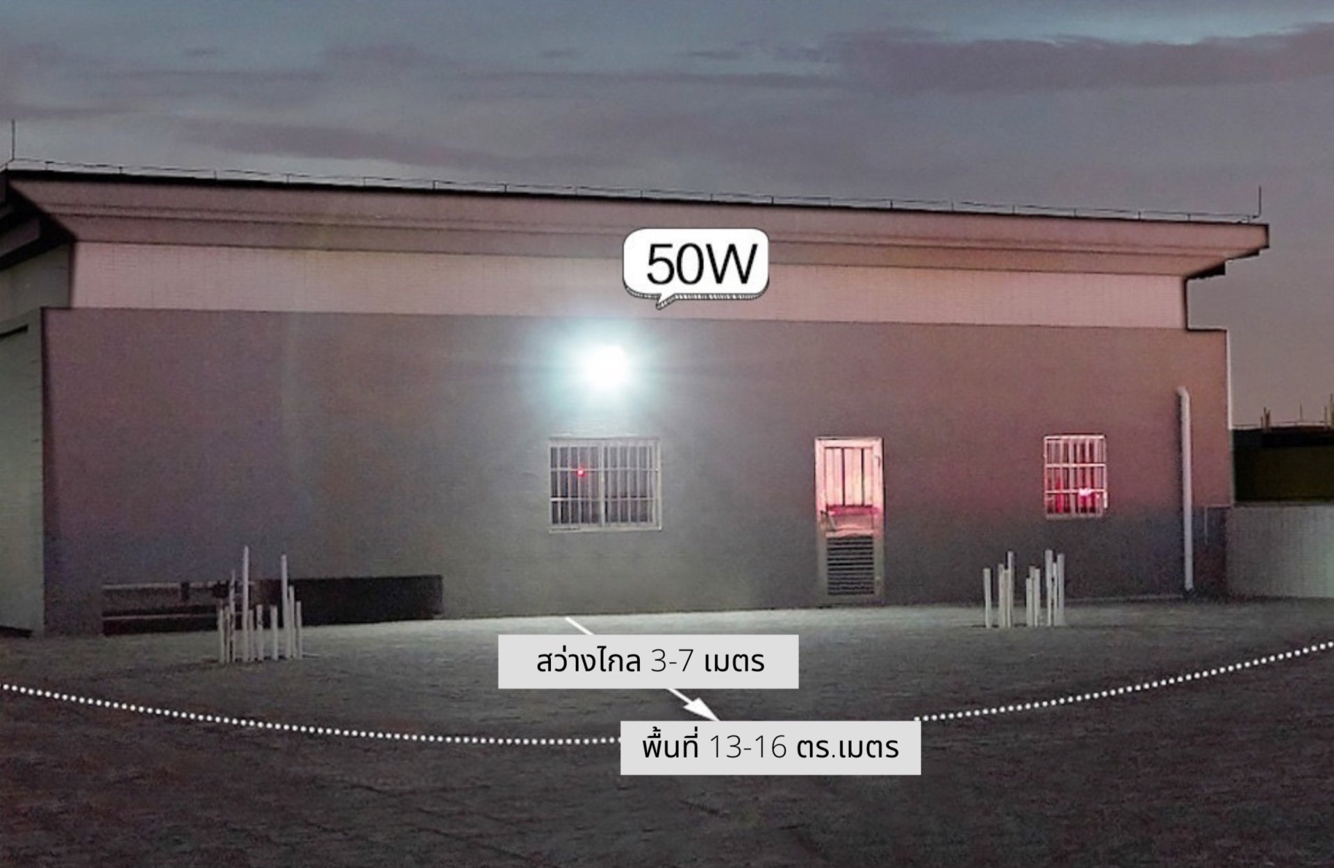 โคมฟลัดไลท์โซล่าร์เซลล์แอลอีดี ปิด-เปิด หรี่แสงได้ด้วยรีโมทคอนโทรล มีให้เลือกตั้งแต่ขนาด 10 วัตต์ ไปจนสูงสุด 300 วัตต์ มีทั้งแสงเดย์ไลท์ และ แสงเหลืองวอร์มไวท์